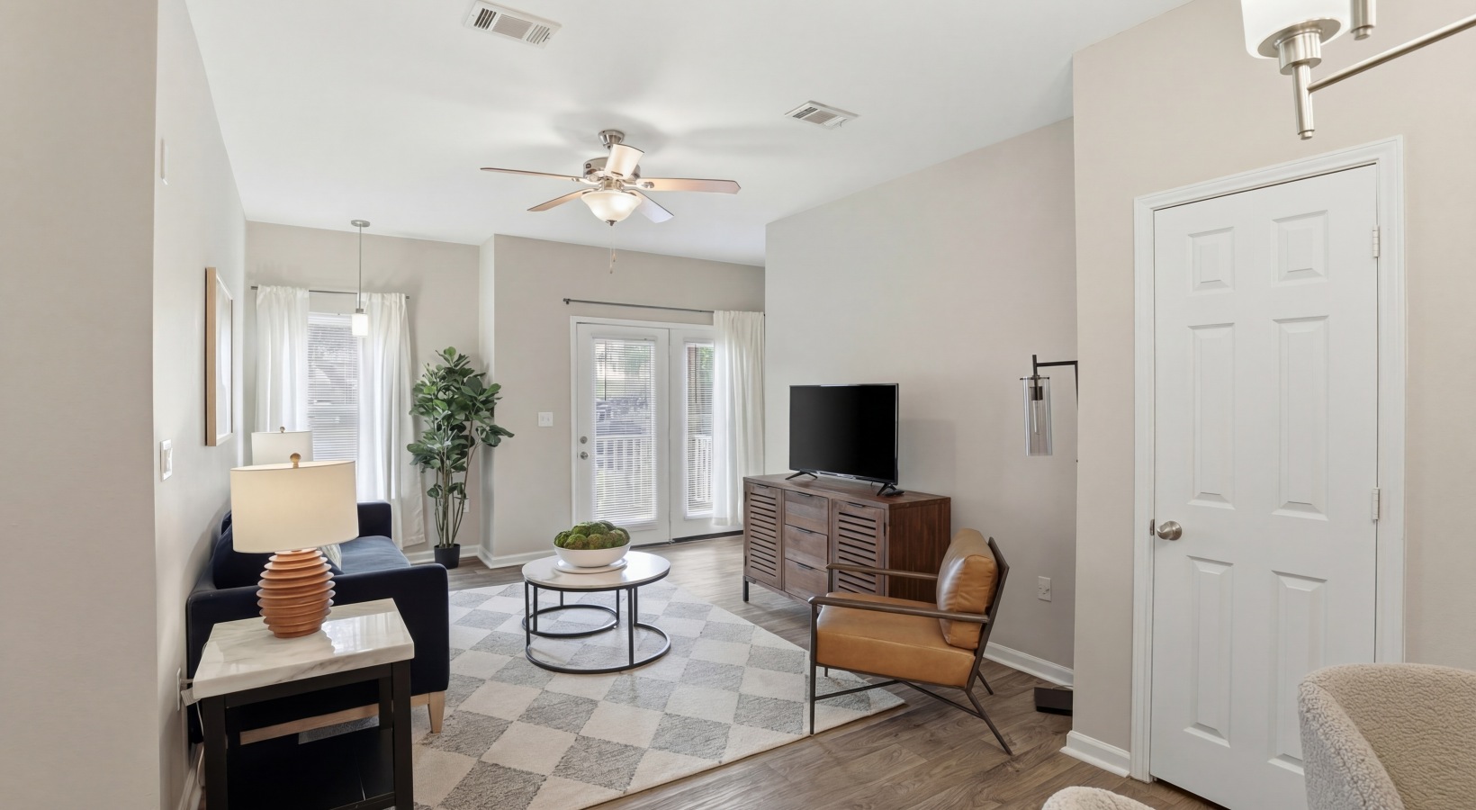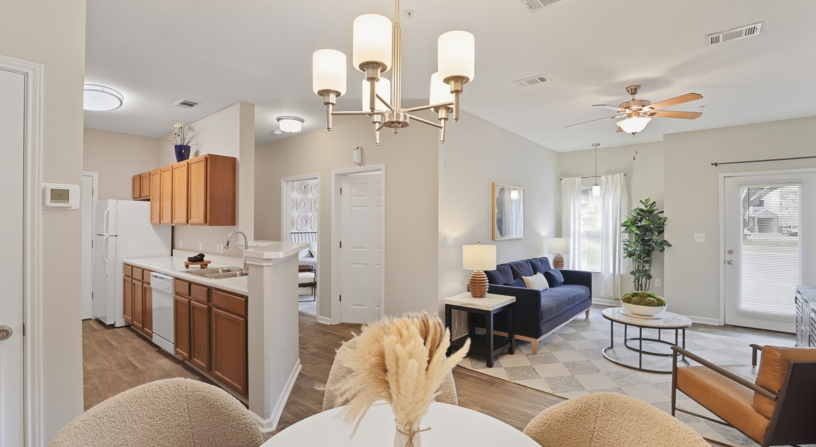 bathroom with counter and toilet bedroom with lots of natural lighting closet with jackets kitchen with black appliances patio with plant and chairs bathroom with wall shelves dining room with table and chairs spacious bedroom with closet living room with modern furniture and natural lighting kitchen with black appliances dining area with table and chairs large living room with modern furniture Private Bath Suite In-Home Laundry Suite Formal Living Suite Open Living Space Entertainer’s Kitchen Culinary Suite Open-Concept Kitchen Formal Living Suite Owner’s Suite Primary Retreat Personal Haven Personal Haven Your Personal Restful Space Guest Suite Guest Suite Bathroom Living and dining room featuring a blue-white themed sofa and a dining set for three people Dining room and kitchen featuring three chairs, one table, and a chandelier Renovated kitchen featuring a sink in front of the kitchen stove Modern living room with blue and white themed sofas and artwork on the wall Renovated bedroom featuring white walls, gray pillows, and a floral design blanket Kitchen room with stove next to refrigerator Renovated bathroom with white toilet and sink, accompanied by a gray cabinet Kitchen area with white stove and wooden cabinets Side view of kitchen area with white stove, microwave, and wooden cabinet